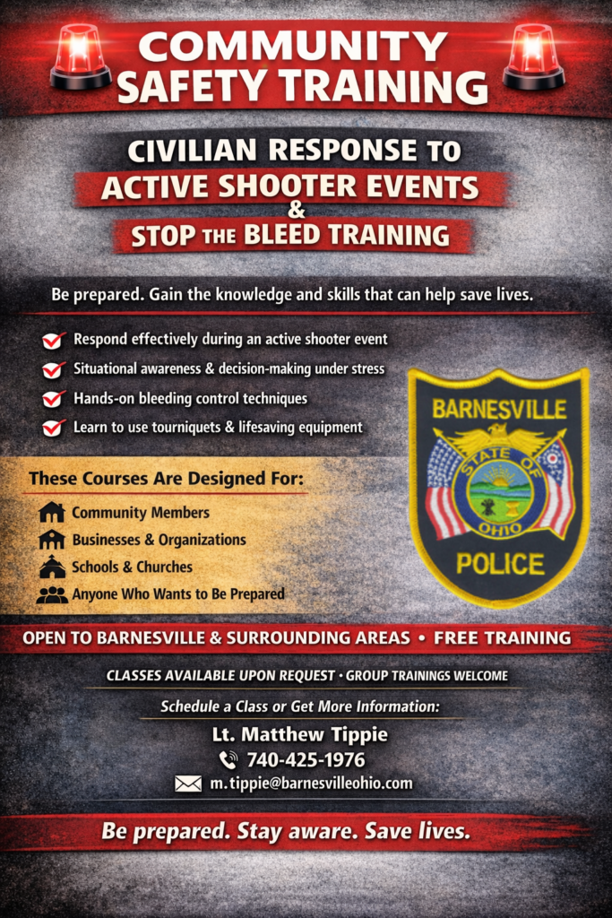 The Barnesville Police Department is proud to offer free community training to residents, businesses, schools, and organizations in Barnesville and the surrounding areas.