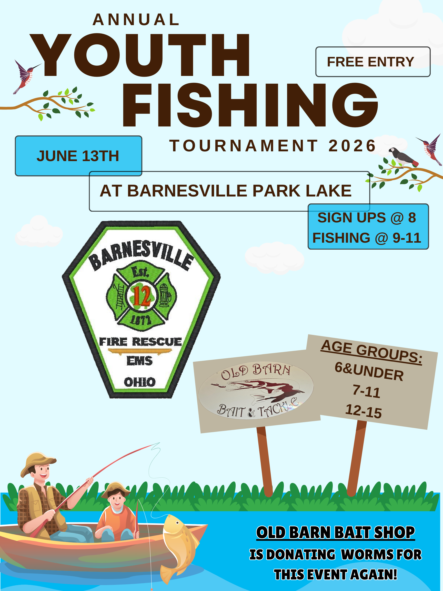 Youth Fishing Tournament + Add to Google Calendar + iCal / Outlook export Date Jun 13 2026 Time 8:00 am - 11:00 am Location Barnesville Memorial Park 130 Fair Street, Barnesville, OH 43713 Category Community Organizer Barnesville Fire & EMS Department Phone 740-425-3054 Share this event Meeting Minutes & AgendasVillage NewsletterCodified Ordinances/LegislationMayorMayor’s CourtVillage CouncilVillage Committees & BoardsCouncil Meeting ScheduleBid AdvertisementsEmployment OpportunitiesState, Federal & Local Resources News & Announcements Archives Archives Select Month March 2026 February 2026 January 2026 December 2025 November 2025 October 2025 September 2025 August 2025 July 2025 June 2025 May 2025 April 2025 March 2025 February 2025 January 2025 December 2024 November 2024 October 2024 September 2024 August 2024 July 2024 June 2024 May 2024 April 2024 March 2024 February 2024 January 2024 December 2023 November 2023 October 2023 September 2023 August 2023 July 2023 June 2023 May 2023 April 2023 March 2023 February 2023 January 2023 December 2022 September 2022